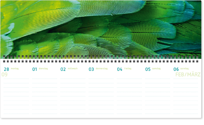 Der Wochenplaner für das Jahr 2011 lässt es nuancenreich GRÜNEN.